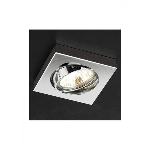 Beépíthető, billenthető, szögletes mennyezeti spot lámpa, króm színű alumínium vázzal.