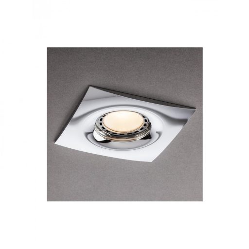 Beépíthető, szögletes mennyezeti spot lámpa, króm színű alumínium vázzal.