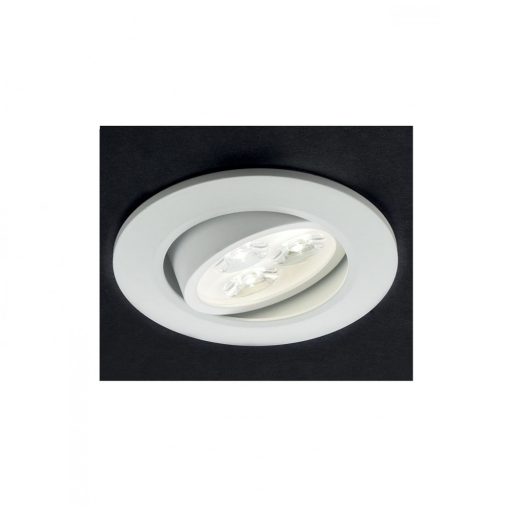 Beépíthető, LED-es, billenthető kerek mennyezeti spot lámpa, matt fehér színű alumínium vázzal és polikarbonát lencsével.