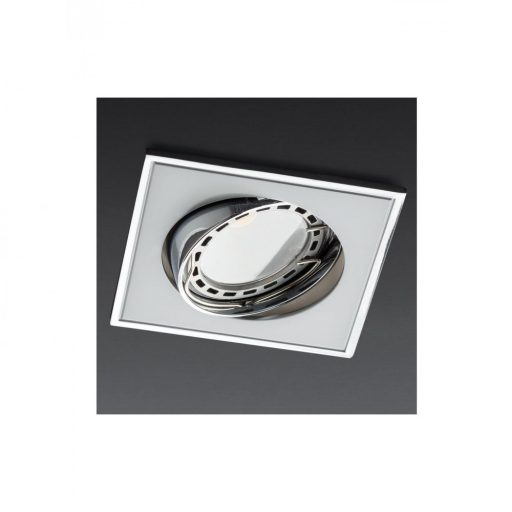 Beépíthető, billenthető, szögletes mennyezeti spot lámpa, gyöngyházas és króm színű alumínium vázzal.