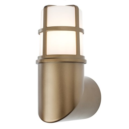 Sárgaréz színű polikarbonát, ABS kültéri fali lámpa UV álló opálos polikarbonát búrával, 1db E27-es foglalattal, IP54-es védelemmel. A lámpa fényforrást nem tartalmaz.