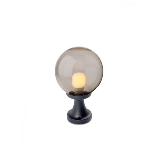 Kültéri állólámpa fekete színű, polikarbonáttal bevont cinkelt acél vázzal és gömb alakú, füstszínű műanyag búrával, IP 44-es védelemmel. A bevonatnak köszönhetően a lámpa ellenáll az UV sugaraknak és a korróziónak.
