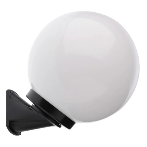 Fekete színű műanyag vázas kültéri fali lámpa 20cm átmérőjű opálos acryl búrával, 1db E27-es foglalattal, IP44-es védelemmel.