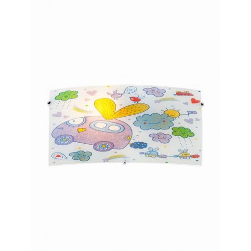 Fehér színű fém vázas gyerekszobába illő fali lámpa színes üveg búrával, 1db foglalattal. Csak a készletünk erejéig vásárolható.