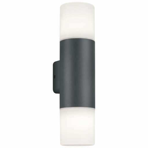 Kültéri fali lámpa antracit színű alumínium vázzal, műanyag búrával, E27-es foglalattal és IP44-es védelemmel. A lámpa felfelé és lefelé egyaránt világít.