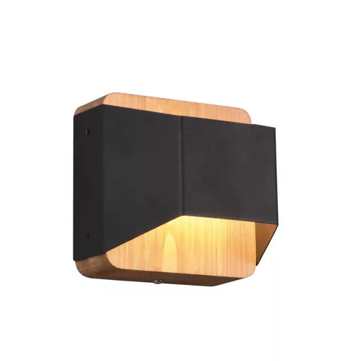 Fa vázas fali lámpa fekete színű fém búrával, beépített meleg fehér színhőmérsékletű LED fényforrással. A lámpa felfelé és lefelé egyaránt világít. A lámpa fényereje fali kapcsoló segítségével több lépcsőben(25,50,100%) kapcsolható.