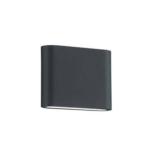 Kültéri fali lámpa antracit színű alumínium vázzal, meleg fehér színhőmérsékletű beépített LED fényforrással és IP54-es védelemmel. A lámpa felfelé és lefelé egyaránt világít.