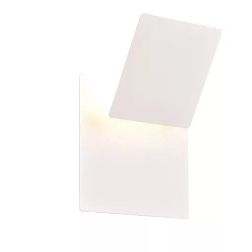 Dekoratív, indirekt fali lámpa matt fehér színű fém vázzal, meleg fehér színhőmérsékletű beépített LED fényforrással. A négyzet alakú fém lap több pozícióba fordítható, így a lámpa kinézete megváltoztatható.