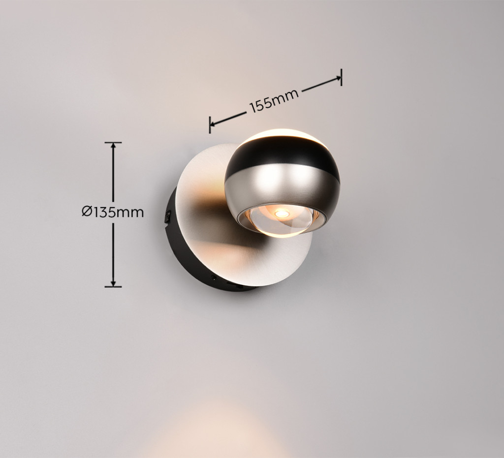Prémium Trio fali lámpa fekete és nikkel színű fém vázzal, fekete-nikkel és átlásztó anyagokból álló fejjel, beépített LED fényforrással. A fali elemen található kapcsoló segítségével a LED színhőmérséklete beállítható 2300 vagy 3000 vagy 4000 Kelvinre (extra meleg vagy meleg vagy természetes fehér színhőmérsékletre). A LED fényereje a fali kapcsoló többszöri fel/lekapcsolásával állítható 25-50-100% között. A lámpa felfelé és lefelé egyaránt világít.