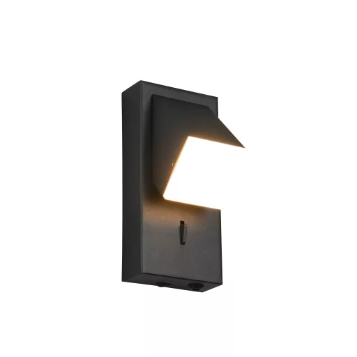 Matt fekete színű fém fali lámpa oldalra kifordítható műanyag búrával, meleg fehér színhőmérsékletű beépített LED fényforrással, a lámpatesten elhelyezett kapcsolóval. A lámpa kialakítása miatt hálózatba is köthető vagy dugvillás külső vezetékkel aljzatba csatlakoztatható, de a csomag nem tartalmazza a vezetéket.