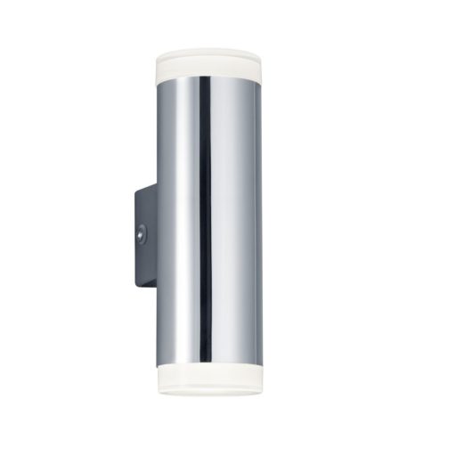 Króm színű műanyag fürdőszobai fali lámpa opálos műanyag betéttel, meleg fehér színhőmérsékletű beépített LED fényforrással, IP44-es védelemmel. A lámpa felfelé és lefelé egyaránt világít.