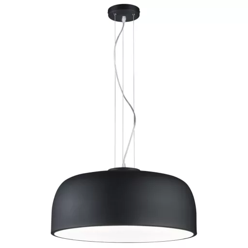 Matt fekete színű fém függeszték lámpa a fény lágyítására szolgáló acryl lappal, 4db E27-es foglalattal.