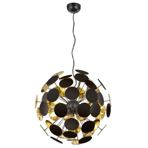 Matt fekete színű fém és műanyag függeszték lámpa 6db E14-es foglalattal.