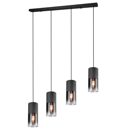 Matt fekete színű fém vázas függeszték lámpa füstös üveg búrával, E27-es foglalattal.