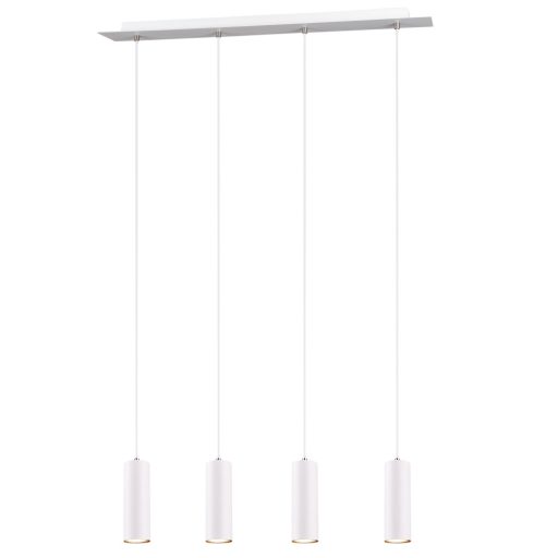 Fehér színű fém függeszték lámpa cső szerű búrával, GU10-es foglalattal.