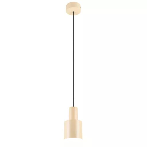 Kis méretű, bézs színű fém függesztett lámpa E27-es foglalattal.
