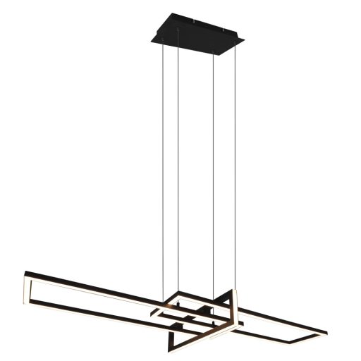 Matt fekete színű fém vázas függeszték lámpa fehér műanyag betétes búrával, beépített meleg fehér színhőmérsékletű LED fényforrással. A lámpa fényereje fali kapcsoló segítségével szabályozható(25-50-100%).