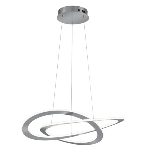 Matt nikkel színű fém vázas függeszték lámpa fehér műanyag betétes búrával, beépített meleg fehér színhőmérsékletű LED fényforrással. A lámpa fényereje fali kapcsoló segítségével szabályozható(25-50-100%).