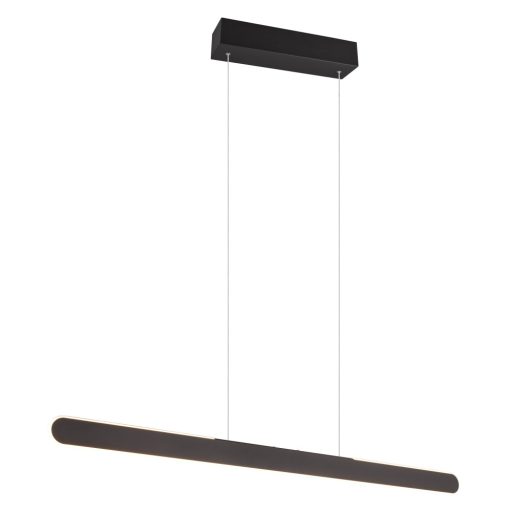 Matt fekete színű fém függeszték lámpa beépített LED fényforrással. A lámpa fején 2 érintőkapcsoló található, melyek segítségével állítható a lámpa fényereje és színhőmérséklete(2700-6500K között). A lámpa felfelé és lefelé egyaránt világít. A lámpa belógása 60-150cm között állítható a lámpafej felemelésével, vagy lefelé húzásával.