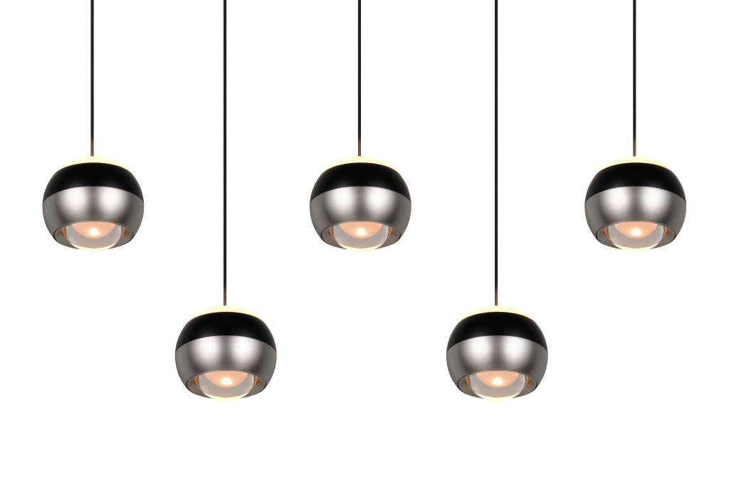 Prémium Trio függeszték lámpa nikkel színű fém vázzal, fekete-nikkel és átlásztó anyagokból álló fejekkel, beépített LED fényforrással. A mennyezeti elem oldalán található kapcsoló segítségével a LED színhőmérséklete beállítható 2300 vagy 3000 vagy 4000 Kelvinre (extra meleg vagy meleg vagy természetes fehér színhőmérsékletre). A lámpafejek magassága lift me technológiával fokozatmentesen állítható a fej húzásával, vagy emelésével. Belógás min. 80cm, max. 200cm. A LED fényereje a fali kapcsoló többszöri fel/lekapcsolásával állítható 25-50-100% között.
