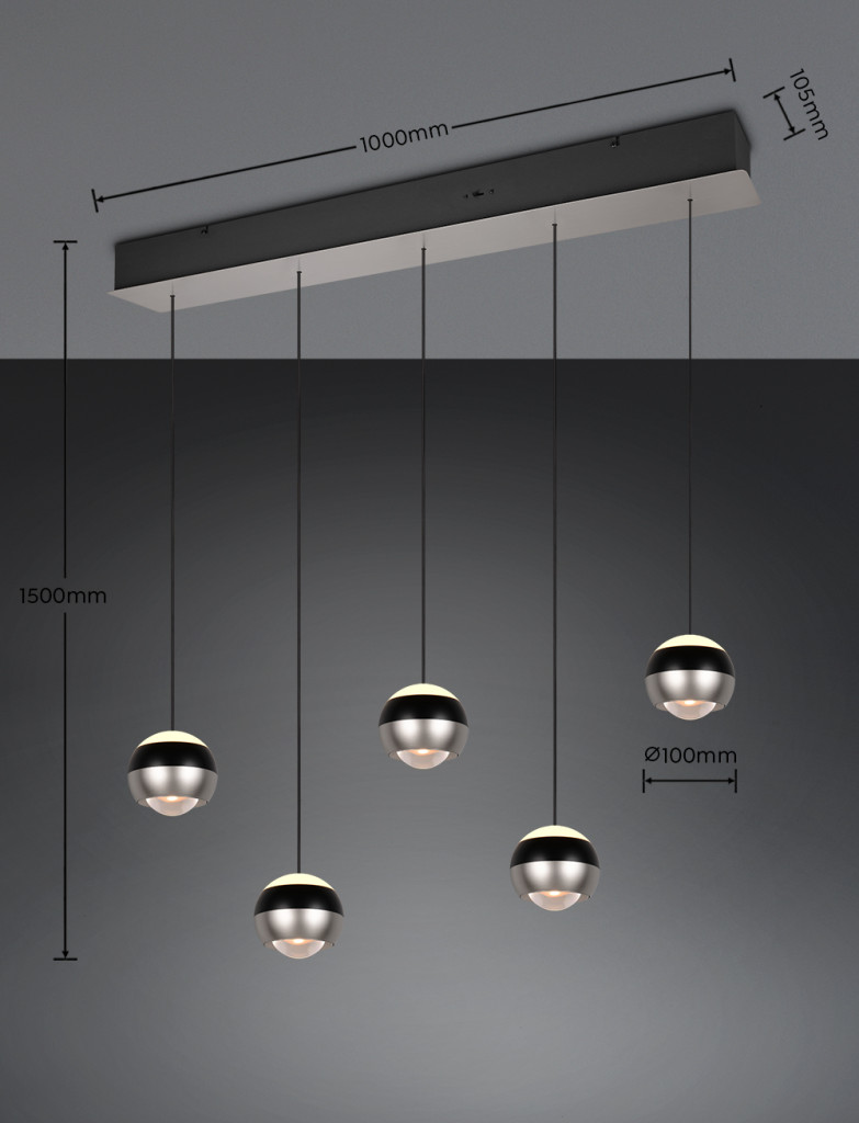 Trio 344410507 Orbit 100x80-200cm, lehúzható, fényerőszabályzós, 2300/3000/4000K 5x960lm függesztett lámpa