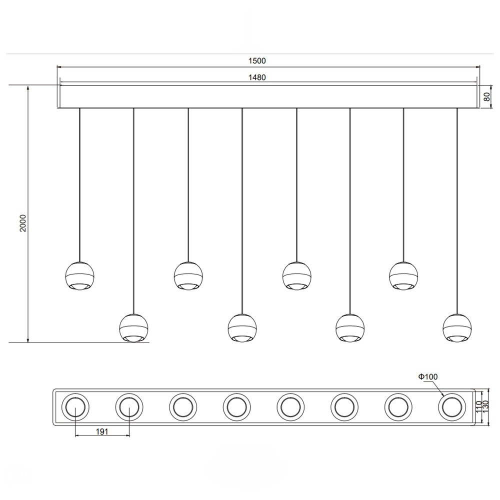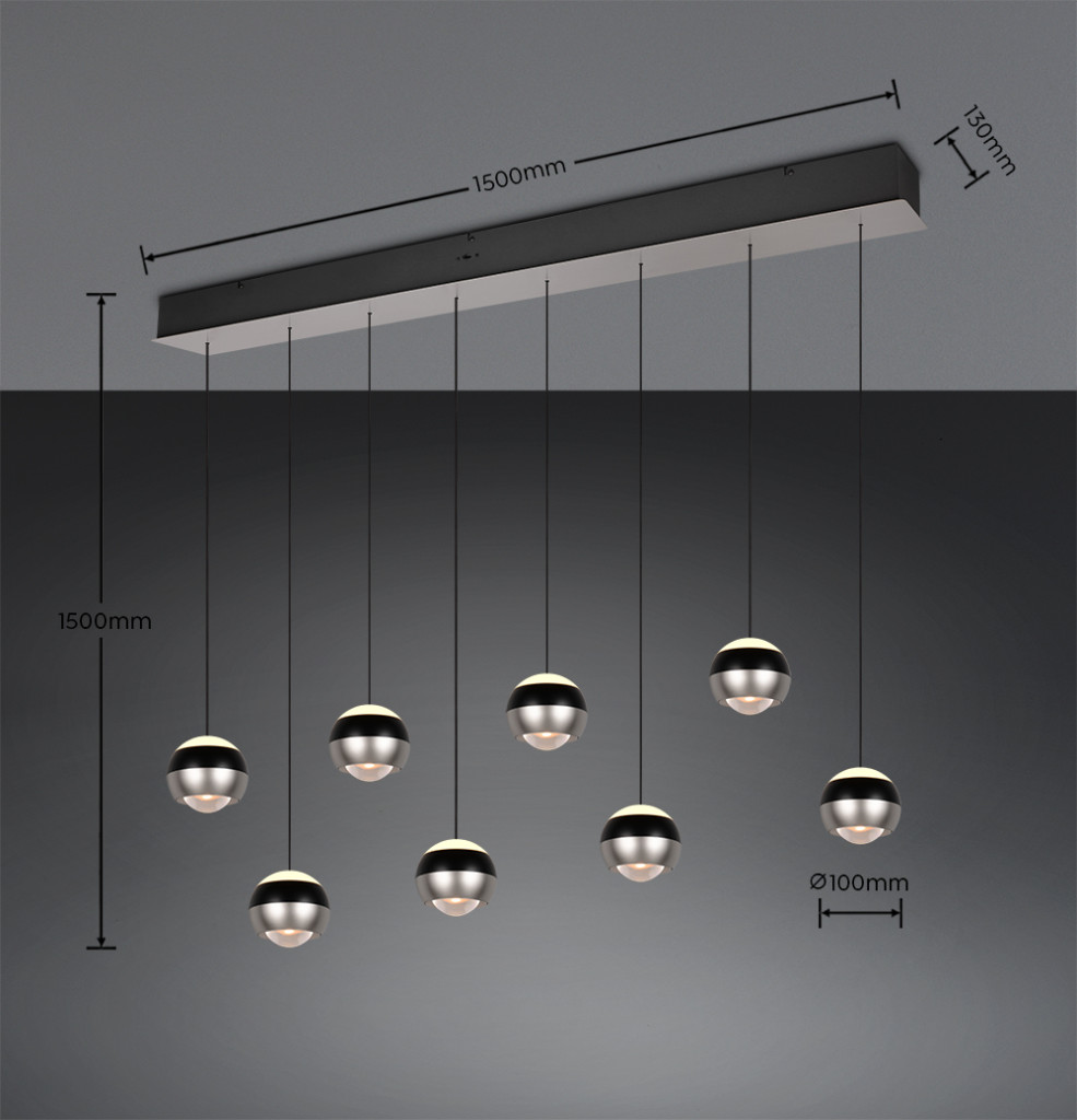 Trio 344410807 Orbit 155x80-200cm, lehúzható, fényerőszabályzós, 2300/3000/4000K 8x960lm függesztett lámpa