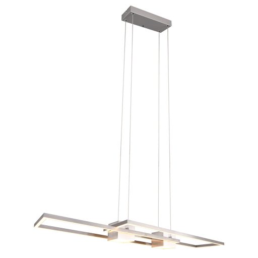Matt nikkel színű fém keretes függesztett lámpa nikkel központi résszel, műanyag betétes búrával, beépített LED fényforrással. A lámpához távirányító tartozik, mely segítségével állítható a LED fényereje, színhőmérséklete(2700 meleg-6500K hideg), továbbá a lámpa memória és éjszakai fény funkcióval is rendelkezik. A lámpa fényereje fali kapcsoló segítségével is több lépcsőben szabályozható (25-50-100%).