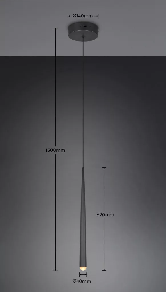 Prémium Trio függeszték lámpa matt fekete színű fém vázzal, kecses, elnyúló csepp alakú fejekkel, beépített LED fényforrással. A mennyezeti elem oldalán található kapcsoló segítségével a LED színhőmérséklete beállítható 2300 vagy 3000 vagy 4000 Kelvinre (extra meleg vagy meleg vagy természetes fehér színhőmérsékletre). A LED fényereje a fali kapcsoló többszöri fel/lekapcsolásával állítható 25-50-100% között.