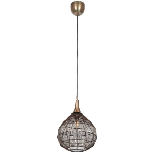 Antik réz színű fém függesztett lámpa különleges és dekoratív 42cm átmérőjű, fémrács búrával, E27-es foglalattal.