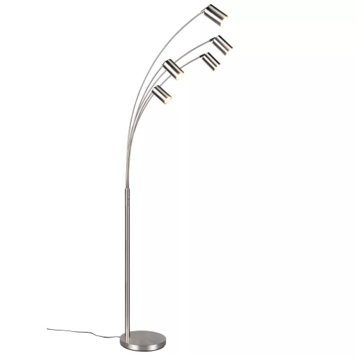 Matt nikkel színű fém álló lámpa 5db GU10-es spot fejjel, lámpatesten elhelyezett kapcsolóval.