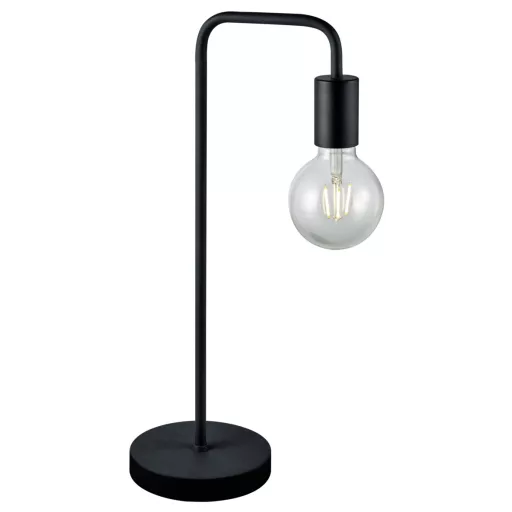 Matt fekete színű fém búra néküli asztali lámpa E27-es foglalattal, vezetékre szerelt kapcsolóval.