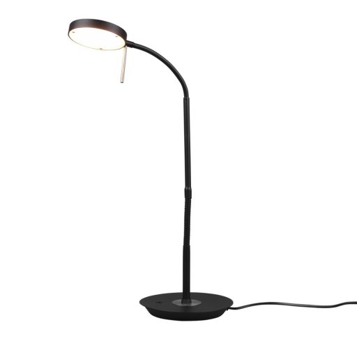 Matt fekete színű fém íróasztali lámpa billenthető karral, érintéssel fényerőszabályozható, bépített LED fényforrással. A LED színhőmérséklete állítható 2300,3000,4000K között.