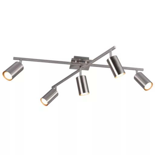 Matt nikkel színű fém mennyezeti lámpa GU10-es foglalattal, forgatható karral.