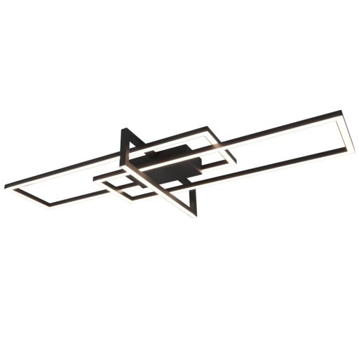 Matt fekete színű fém vázas mennyezeti lámpa fehér műanyag betétes búrával, beépített meleg fehér színhőmérsékletű LED fényforrással. A lámpa fényereje fali kapcsoló segítségével szabályozható(25-50-100%).