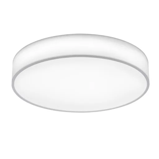 Fém vázas mennyezeti lámpa fehér színű textil lámpaernyővel, alul a fény lágyítására szolgáló műanyag lappal, beépített LED fényforrással. A lámpához távirányító tartozik, mely segítségével állítható a LED fényereje, színhőmérséklete(3000-5000K).