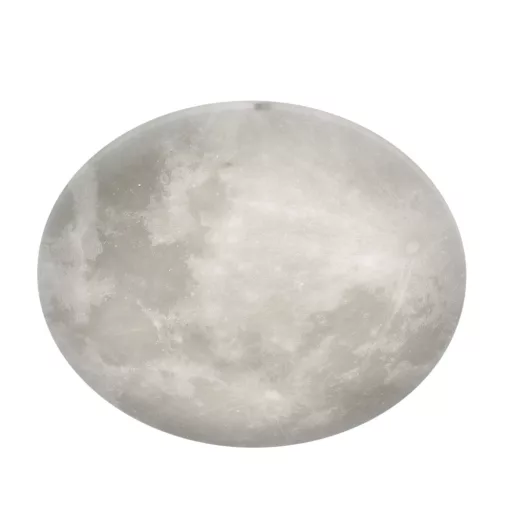 Fehér színű műanyag mennyezeti lámpa beépített meleg fehér színhőmérsékletű LED fényforrással. A lámpához távirányító tartozik, mely segítségével állítható a LED fényereje és a hold fázisai.