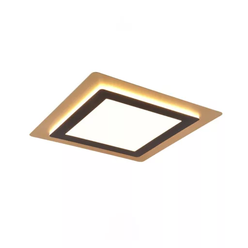 Fekete-arany színű fém vázas mennyezeti lámpa fekete-fehér színű fém és műanyag búrával, 2700-6500K közt állítható színhőmérsékletű beépített LED fényforrással. A lámpa egyéb funkciói: távirányítóval, fényerőszabályzós, színhőmérséklet szabályzóval, éjszakai fény funkcióval.