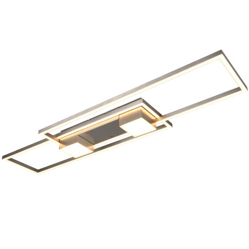 Matt nikkel színű fém keretes mennyezeti lámpa nikkel központi résszel, műanyag betétes búrával, beépített LED fényforrással. A lámpához távirányító tartozik, mely segítségével állítható a LED fényereje, színhőmérséklete(2700 meleg-6500K hideg), továbbá a lámpa memória és éjszakai fény funkcióval is rendelkezik. A lámpa fényereje fali kapcsoló segítségével is több lépcsőben szabályozható (25-50-100%).