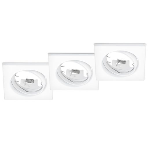 Fehér színű fém billenthető mennyezetbe építhető lámpa GU10-es foglalattal. A szett 3db-ot tartalmaz.