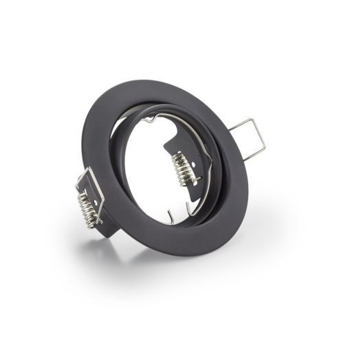 Fekete színű fém billenthető mennyezetbe építhető lámpa GU10-es foglalattal.
