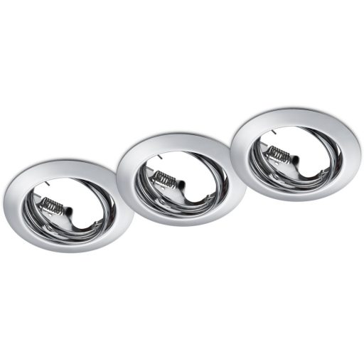 Króm színű fém billenthető mennyezetbe építhető lámpa GU10-es foglalattal. A szett 3db-ot tartalmaz.