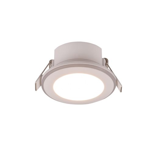 Fehér színű műanyag vázas mennyezetbe építhető lámpa fehér színű műanyag búrával, meleg fehér színhőmérsékletű beépített LED fényforrással. A lámpa egyéb funkciói: távirányítóval, fényerőszabályzós, színváltóval. A lámpa peremén és közepén található LED világítás 3 állásba kapcsolható, csak a perem, csak a középső rész, vagy mindkettő világít. Színváltásra csak a lámpa peremén lévő LED képes.