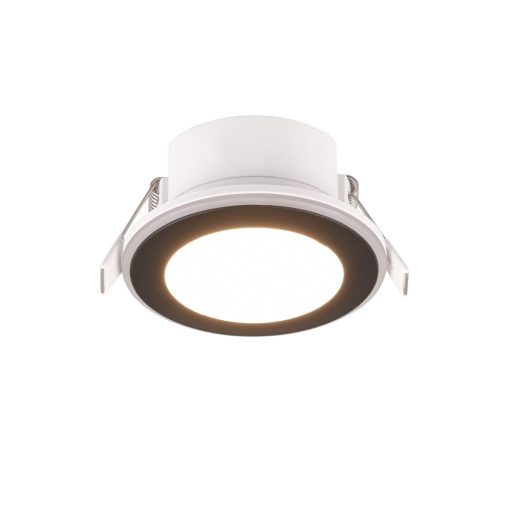 Fekete színű műanyag vázas mennyezetbe építhető lámpa fehér színű műanyag búrával, meleg fehér színhőmérsékletű beépített LED fényforrással. A lámpa egyéb funkciói: távirányítóval, fényerőszabályzós, színváltóval. A lámpa peremén és közepén található LED világítás 3 állásba kapcsolható, csak a perem, csak a középső rész, vagy mindkettő világít. Színváltásra csak a lámpa peremén lévő LED képes.