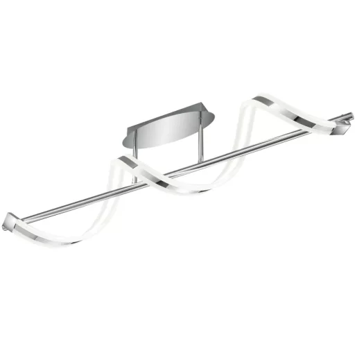 Króm színű fém vázas mennyezeti lámpa fehér acryl betétes búrával, beépített LED fényforrással. A lámpa fényereje szabályozható.