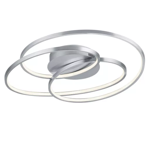 Matt nikkel színű fém mennyezeti lámpa műanyag betétes búrával, beépített meleg fehér színhőmérsékletű LED fényforrással. A lámpa fényereje fali kapcsoló segítségével több lépcsőben(25,50,100%) kapcsolható.