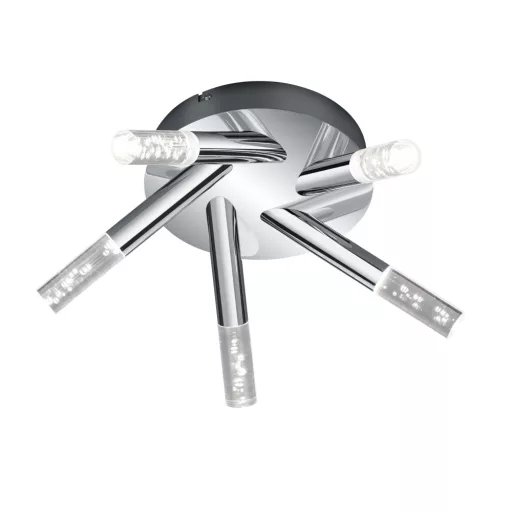 Króm színű fém vázas fürdőszobai mennyezeti lámpa buborékos acryl búrával, meleg fehér színhőmérsékletű beépített LED fényforrással, IP44-es védelemmel.