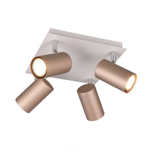 Világos szürke és kávé színű fém spot lámpa GU10-es foglalattal, billenthető fejjel.