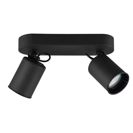 Matt fekete színű fém spot lámpa billenthető fejjel, GU10-es foglalattal.