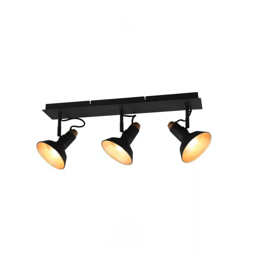 Fekete színű fém vázas spot lámpa fekete-arany színű fém búrával, E14-es foglalattal. A lámpa egyéb jellemzői: állítható fejű lámpa.