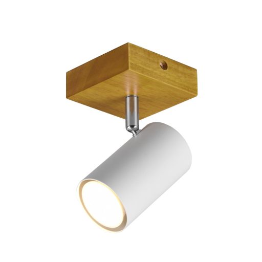 Fa vázas spot lámpa fehér színű fém billenthető búrával, GU10-es foglalattal.